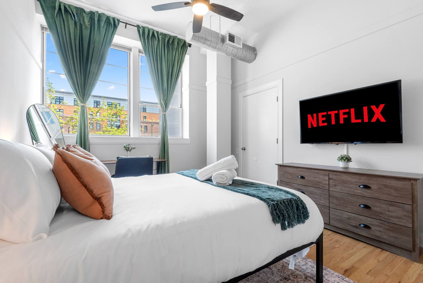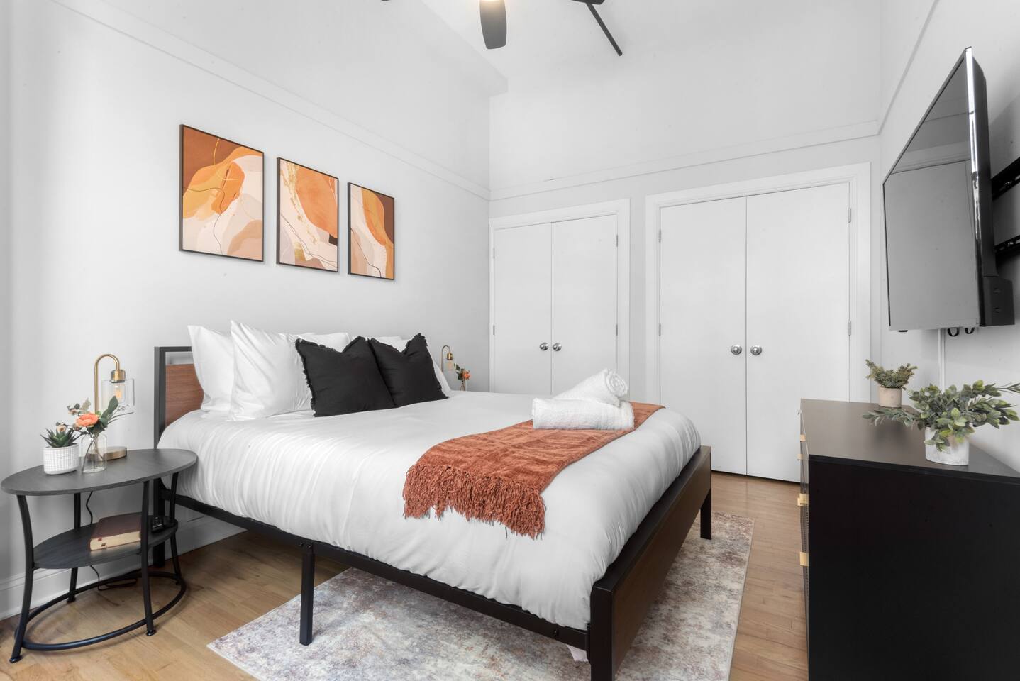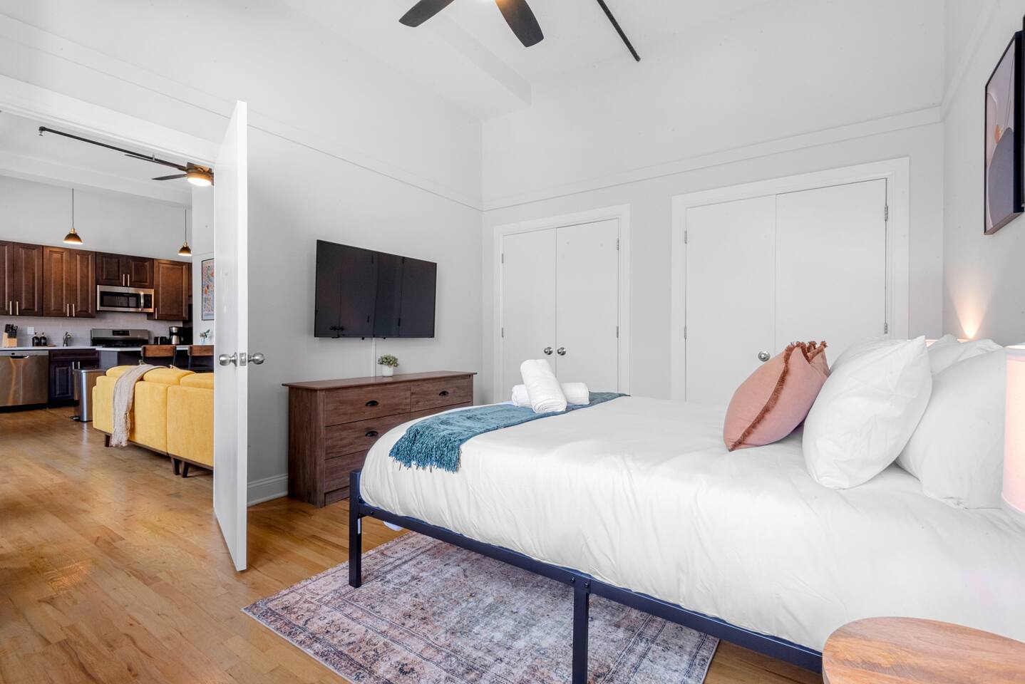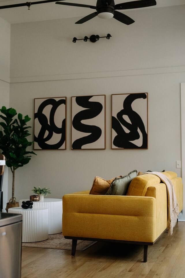 Please note that we are a family friendly property. We kindly ask that you do not book if you intend on partying whatsoever. We are also ideal for corporate travelers, as our place offers comfort and convenience near key business hubs. ~Snoozing Place • Master Bedroom: (1) Comfortable Queen-sized bed • 2nd Bedroom: (1) Comfortable Queen-sized bed • Living Room: 4-5 Comfy Sofa which includes a chaise • Twin-sized rollaway bed (stored in Master Bedroom closet) ~Dining Area • Fully equipped kitchen: Utensils, plates, microwave, fridge, blender and more • Kitchen Dining: 4 Seats + 3 bar stools ~Living Room • Large 65' inch flat screen smart TV with all streaming options available • High-speed WIFI internet • Central AC/Heating Unit