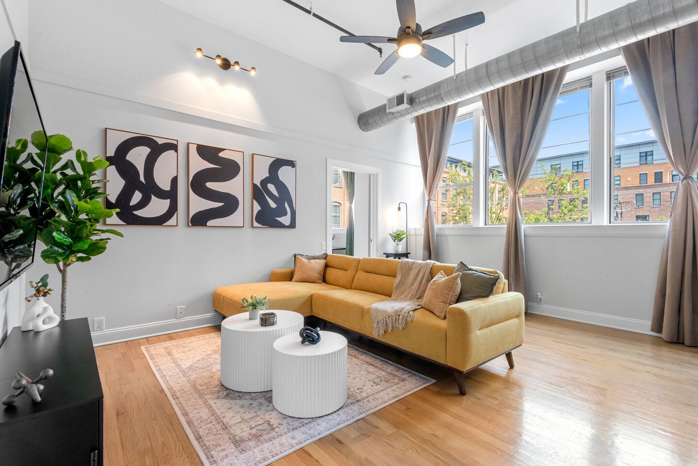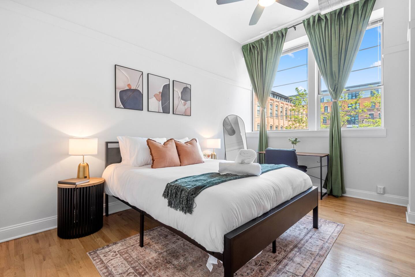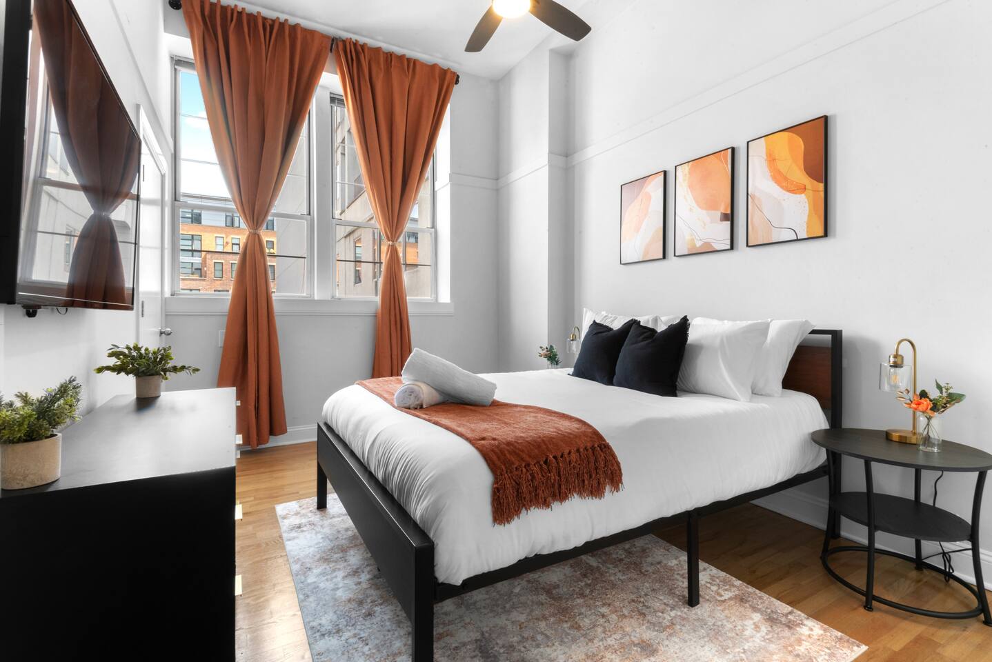Please note that we are a family friendly property. We kindly ask that you do not book if you intend on partying whatsoever. We are also ideal for corporate travelers, as our place offers comfort and convenience near key business hubs. ~Snoozing Place • Master Bedroom: (1) Comfortable Queen-sized bed • 2nd Bedroom: (1) Comfortable Queen-sized bed • Living Room: 4-5 Comfy Sofa which includes a chaise • Twin-sized rollaway bed (stored in Master Bedroom closet) ~Dining Area • Fully equipped kitchen: Utensils, plates, microwave, fridge, blender and more • Kitchen Dining: 4 Seats + 3 bar stools ~Living Room • Large 65' inch flat screen smart TV with all streaming options available • High-speed WIFI internet • Central AC/Heating Unit