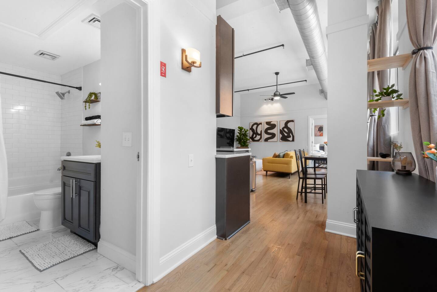 ~ Parking ~ • Hourly paid street parking available • Overnight parking garage: Closest with Hourly and Overnight options - Pro Park The Courtyard at Jefferson Garage ~ Laundry ~ • Laundry rooms are available within the building and located on the 2nd floor (next to the elevator) and 3rd floor • Hours of operation for Laundry rooms: 6am-10pm • Please note there are charges per wash/dry ~ Transportation ~ We recommend using Maps as a navigator for iPhones • Local bus routes to NYC: - Bus to NYC: Bus #126 - Hoboken to Port Authority Bus Terminal. Closest stop: Washington St & 11th (9 minute walk to this stop) about 10 minute bus ride from this stop • Ferry to NYC: Hoboken 14th st terminal: 10-20 minute ride depending on destination in NYC • Local routes to get to the PATH train station • Bus #126: Get on at Washington St & 11th bus station and get off at Hoboken Terminal Ln 6 • PATH train station leads to NYC • Public transportation to travel within Hoboken/NJ: The HOP & Light Rail ~ Attractions ~ NYC: • Little Island: 15 min • Statue of Liberty: 20 min • Hudson Yards: 20 min • Metlife Stadium (NJ): 20 min • American Dream Mall (NJ): 20 min • Prudential Center (NJ): 25 min • Madison Square Garden: 25 min • Empire State Building 25 min • Times Square: 30 min • Central Park: 30 min • Rockefeller Center: 30 min • Metropolitan Museum of Art: 40 min • Fifth Avenue: 40 min • Yankee Stadium: 45 min Hoboken: • Washington St: .4 miles - 5 min drive • Hoboken Historical Museum: .7 miles - 5 min drive • Maxwell Place Park - .8 miles - 6 min drive • Hudson River Waterfront Walkway: 1.4 miles - 9 min drive • Newport Beach: 1.9 miles - 10 min drive • Skyway Golf Course: 5.3 miles - 15 min drive Additional Local Essentials: • Shop Rite Grocery Store: - 6 min walk • Laundromat: 4 min drive • Trader Joe's: 4 min drive • Planet Fitness: 5 min drive • Hoboken University Medical Center: 5 min drive • Stevens Institute of Technology: 6 min drive • Christ Hospital: 9 min drive • Newark Liberty International Airport: 20 min drive • LaGuardia Airport: 35 min drive • John F. Kennedy International Airport: 50 min drive ~ Please observe our HOUSE RULES ~ We have these rules in place to maintain the highest quality stay for our guests! • No Smoking of ANY kind (cigarettes, cigars, marijuana and vapes) - A $1000 fee will be applied if any evidence is present to treat air and clean carpets and scrub walls. • No parties, events, birthdays, bachelor or bachelorette stays. Right to cancel reservation without refund and a minimum fine of $1000 will be imposed if evidence is detected. • No pets • Quiet hours starting at 9:30pm • No loud noise or music past 9pm • No disturbing neighbors. We kindly ask you are mindful of your noise levels at all times. It is essential for us to maintain great relationships with our neighbors to continue hosting you and future guests. • No extra/overnight guests. Please message us beforehand for confirmation. • No Mail/Packages Delivered to the property. Please send it to a nearby pick up. • No moving or rearranging of the furniture (outside of the rollaway bed) • No unplugging of the electronics • No Pre-Check in Bag Storage - (Local bag storage available at the UPS Store in Hoboken provided by Bounce) • Unplug all unused appliances, hair curler, laptop chargers from socket when leaving the home. Turn off the stove, oven, and AC/heater. • Please put and leave all used/dirty linens on the beds • Check-in time is 4:00pm - 10:00pm • Check-out time is 10:00am • Please do not leave excess amount of belongings behind as this could result in an extra cleaning fee charge. This charge can be up to an extra $100 depending on the amount of extra cleaning needed. • We do not permit any Airbnb Services or Experiences of any kind at this property. This includes third-party bookings make through the Airbnb Experiences platform. Any guest who attempts to host or bring an Airbnb-related Service or Experience onto the premises without our prior written approval will have their reservation cancelled immediately, with no refund issued. ~ Property Disclosures ~ We have one, actively recording camera outside the front entrance of the unit which records video and audio upon live motion movement in the area. There is also a smart home device in the unit which actively records noise decibel levels. The smart home device does not record audio or video. All camera devices are on the exterior of the unit and in no way shape or form point inside the house to protect your privacy. Devices are on 24/7. There are no indoor cameras. Please also note, the apartment building also has cameras in common areas such as the front entrance to the building. We reserve the right to cancel your reservation and enforce fines if the house rules are broken. Booking of this property is an acceptance of house rules.